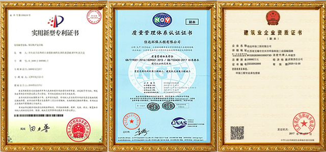經過二十多年發(fā)展與積累,已取得環(huán)保工程專業(yè)承包壹級、建筑機電專業(yè)承包叁級、環(huán)境工程設計能力乙級、環(huán)境污染治理能力乙級、安全生產標準化三級等資格證書。